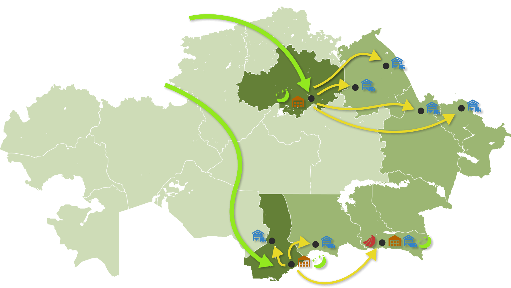 Жеке инфрақұрылым: дистрибьюторлық орталықтар, қоймалар, пісіп-жетілу камералары